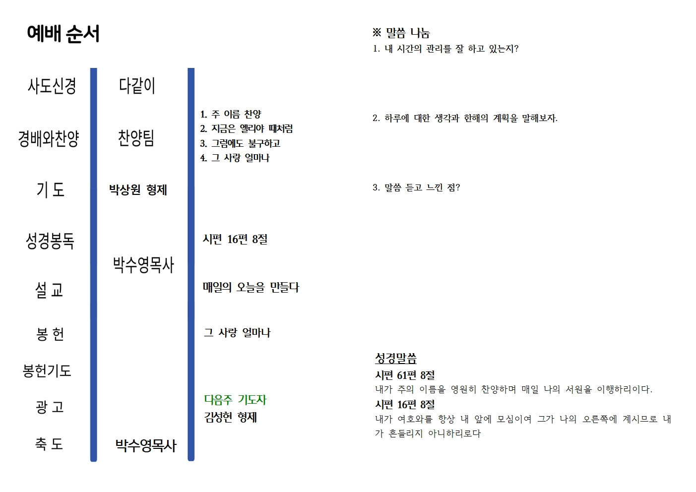 예배시간