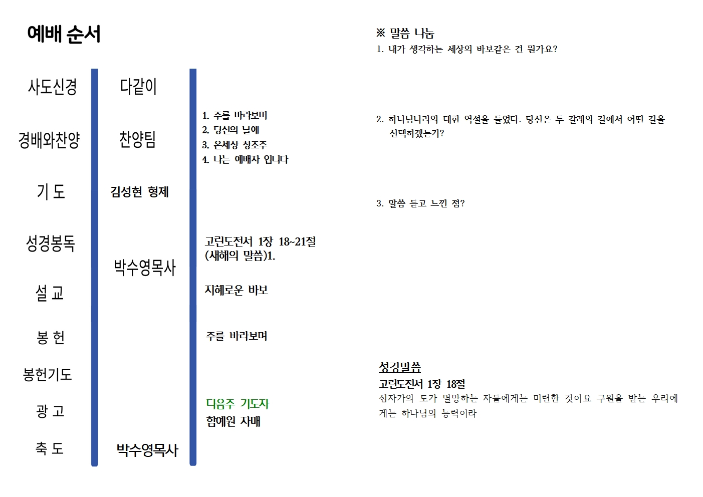 2026년 1월 11일 청청예배주보