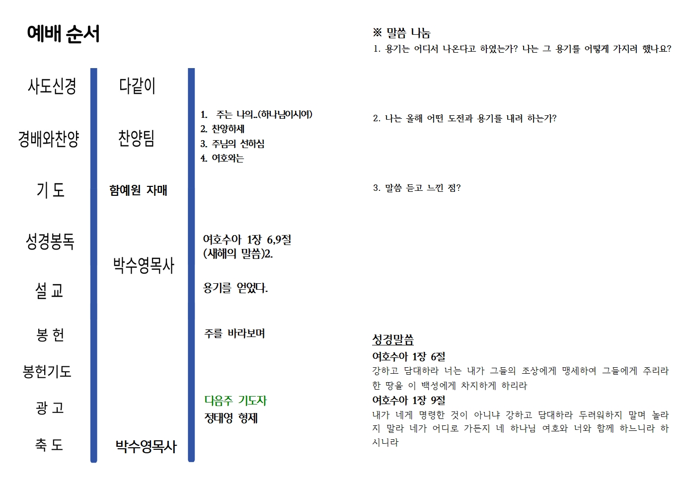 2026년 1월 11일 청청예배주보