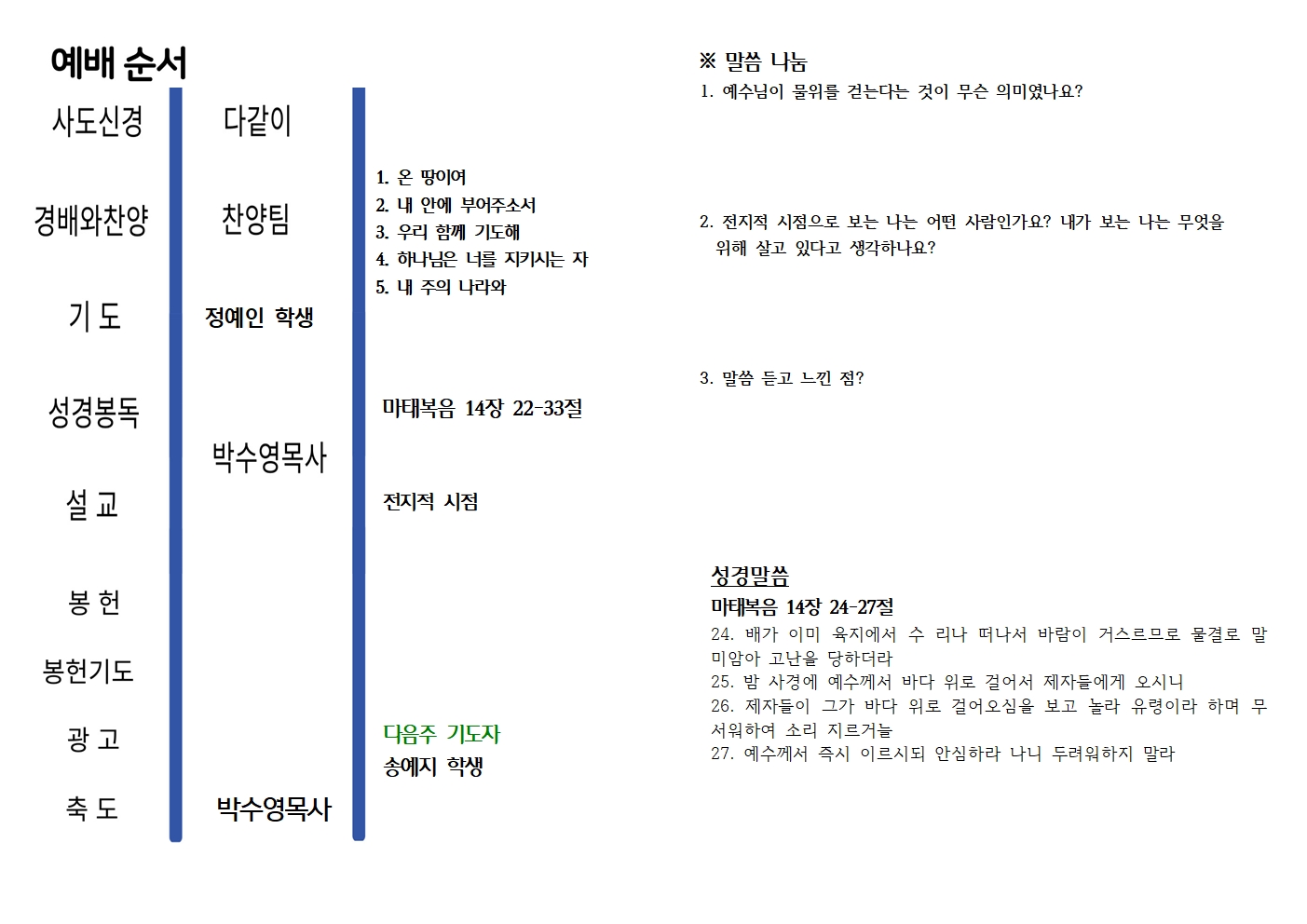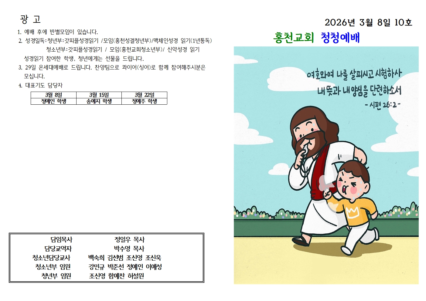 2026년 3월 15일 청청예배 주보