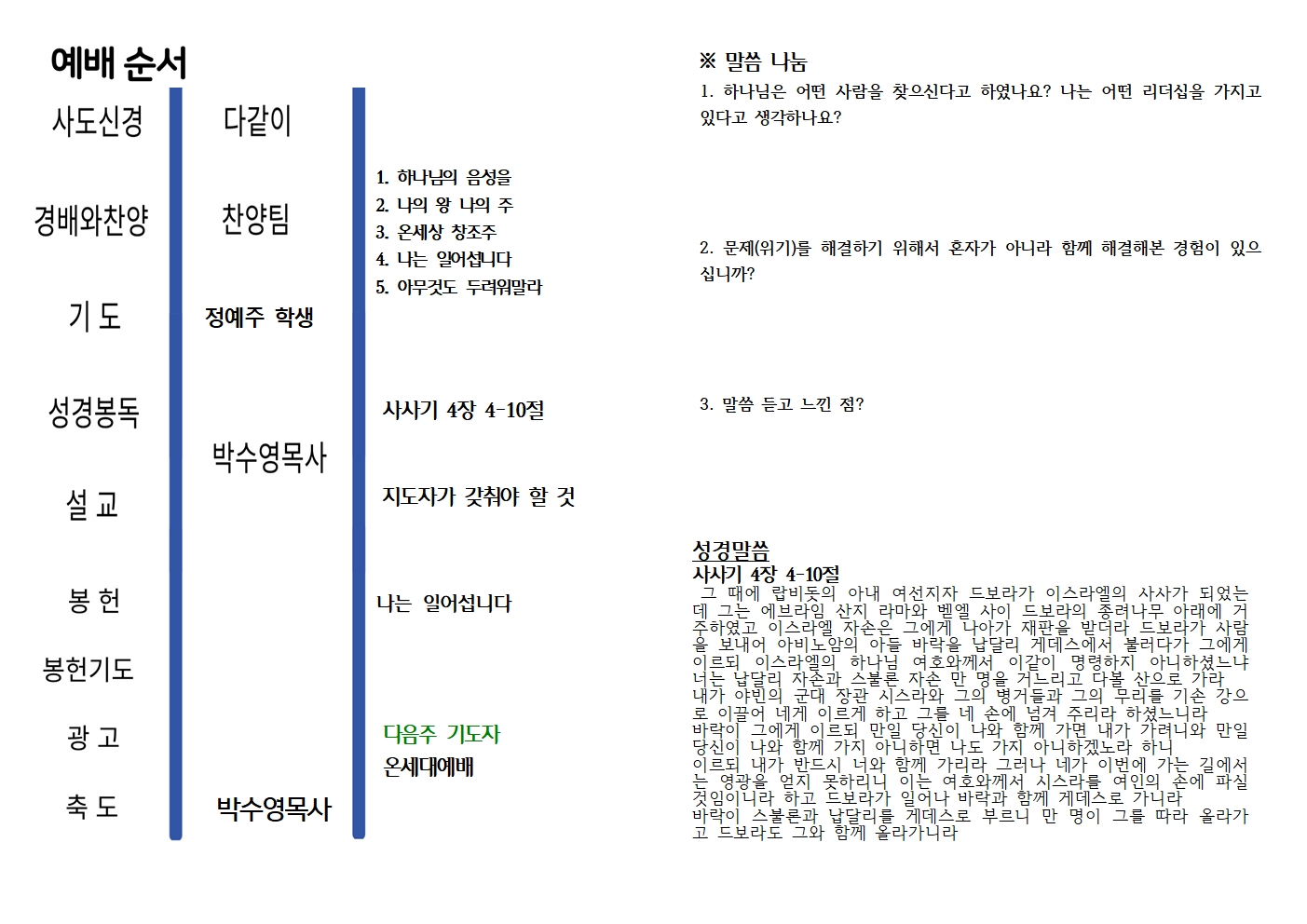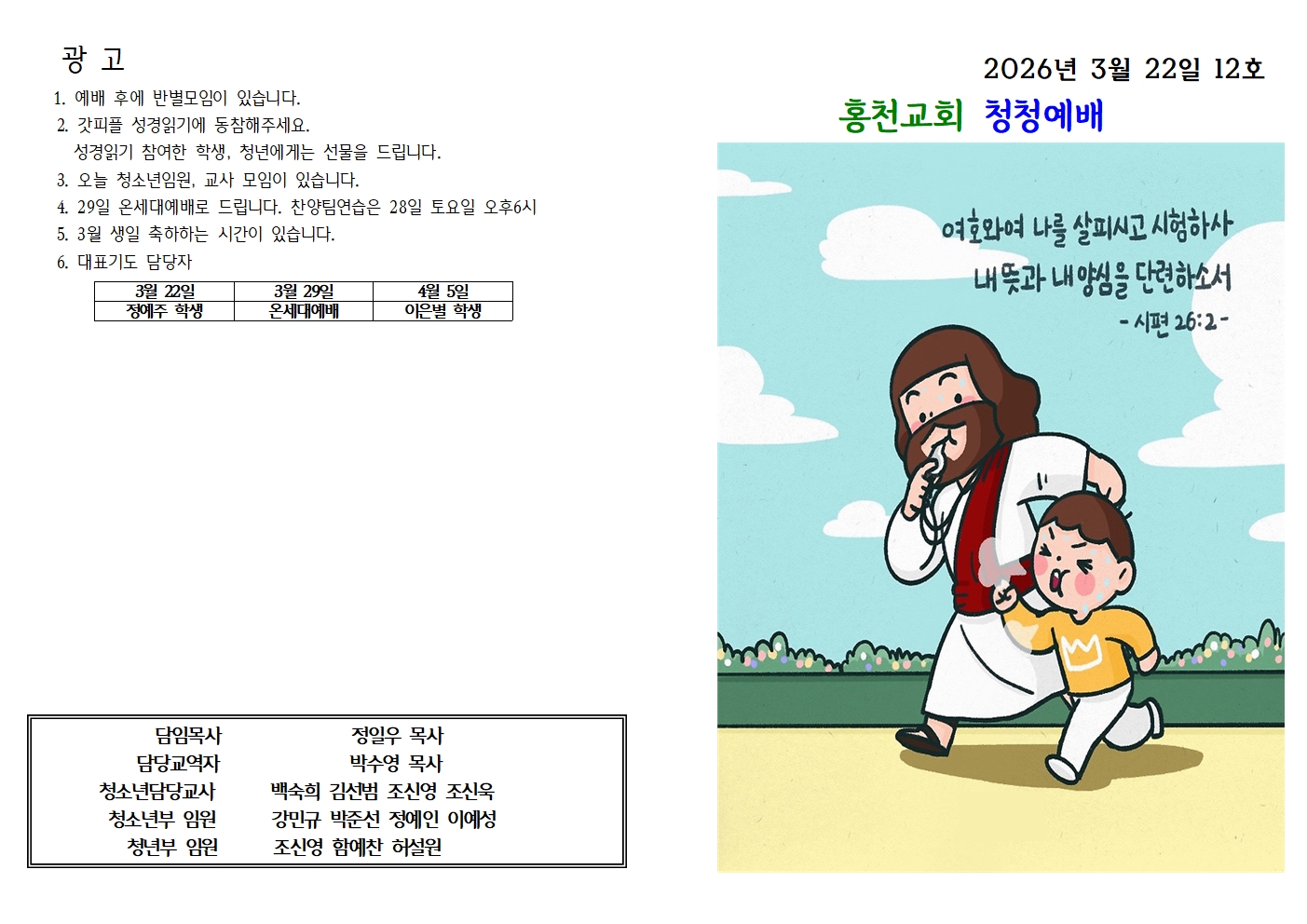 2026년 3월 22일 청청예배 주보