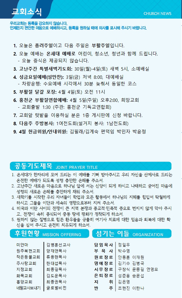 2026년 3월 29일 주보 온세대예배